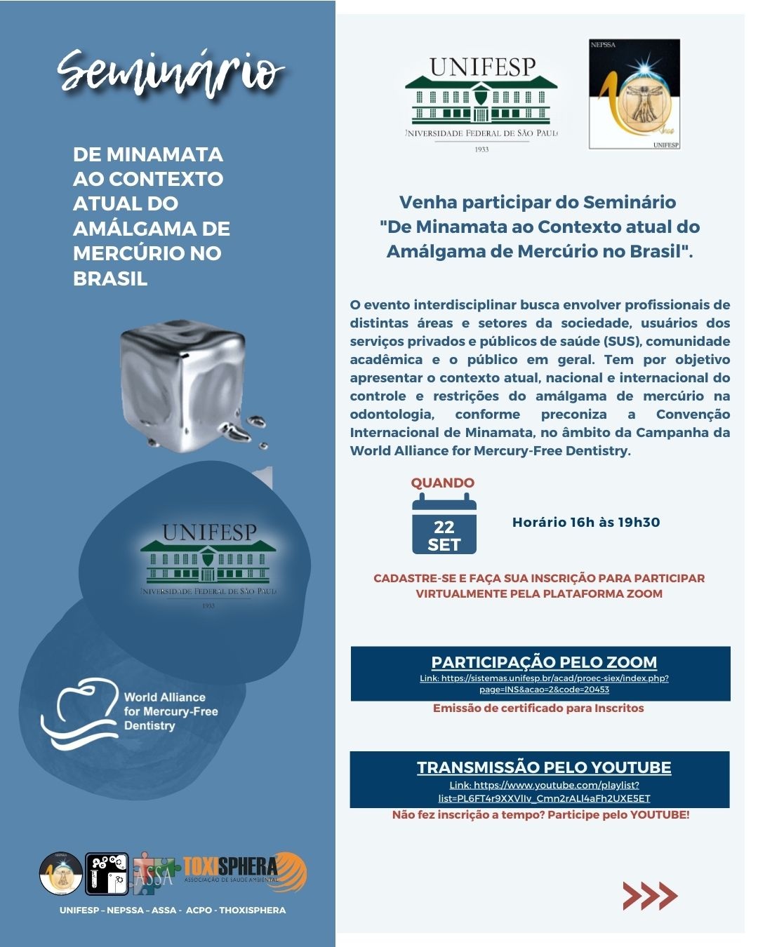 SEMINÁRIO: "De Minamata ao contexto atual do Amálgama de Mercúrio no Brasil” INSCRIÇÕES ABERTAS ATÉ 20/09/2021 - VAGAS LIMITADAS
